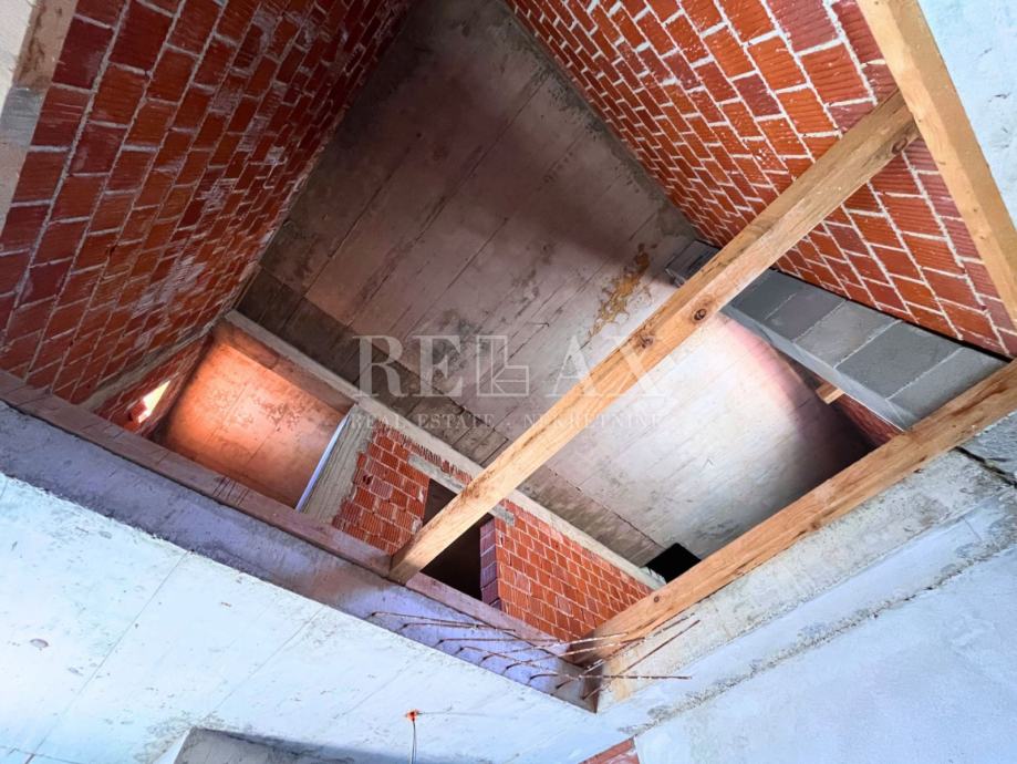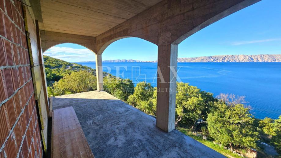U mirnom i slikovitom mjestu Sibinj Krmpotski, smještena u prvom redu do mora, nalazi se ova započeta gradnja kuće koja se prostire na impresivnih 300 m2 stambenog prostora, sa okućnicom od 1 950,20 m2. Kuća se sastoji od visokog prizemlja i kata, a cijela nekretnina pozicionirana je tako da pruža spektakularan, neometan panoramski pogled na more, čime se dodatno naglašava njezina iznimna vrijednost.