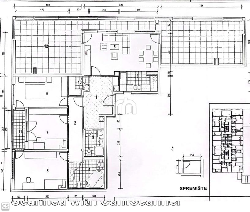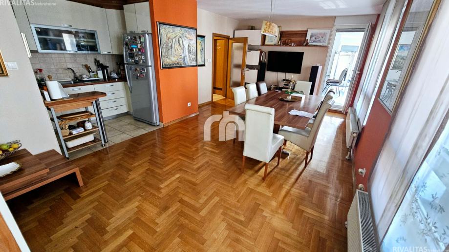 Stan je u vlasničkom listu140 m2, realno 180 m2 ( preinaka velike terase u dnevni boravak i produžetak blagovaone)