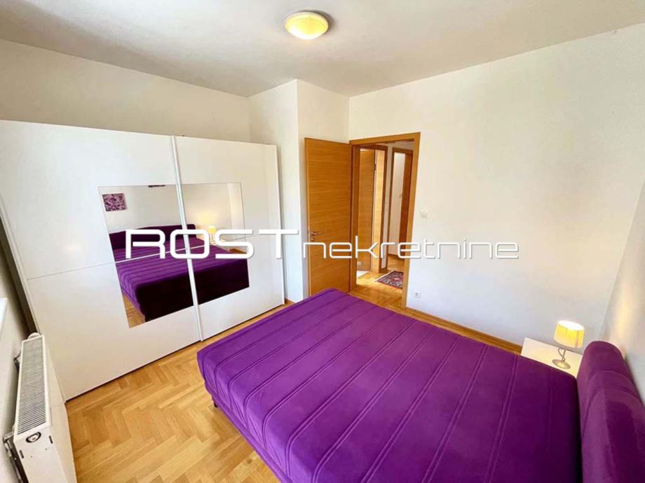 STAN SE SASTOJI od ulaznog prostora zaštićenog protuprovalnim vratima, opremljenog sa video nadzorom ulaza i namještenog sa ladičarem za obuću i zidnom vješalicom, kuhinje s pultom, atraktivnog, klimatiziranog dnevnog boravka sa IZLAZOM NA BALKON, hodnika sa ugradbenim garderobnim ormarom, spavaće sobe s bračnim ležajem, garderobnim ormarom i IZLAZOM NA BALKON, treće sobe sa klik - klak ležajem, radnim stolom sa stolicom i garderobnim ormarom, PRVE kupaonice sa kadom i WC-om, DRUGE kupaonice sa tuš kabinom i WC-om i BALKONA (7.00 m2).