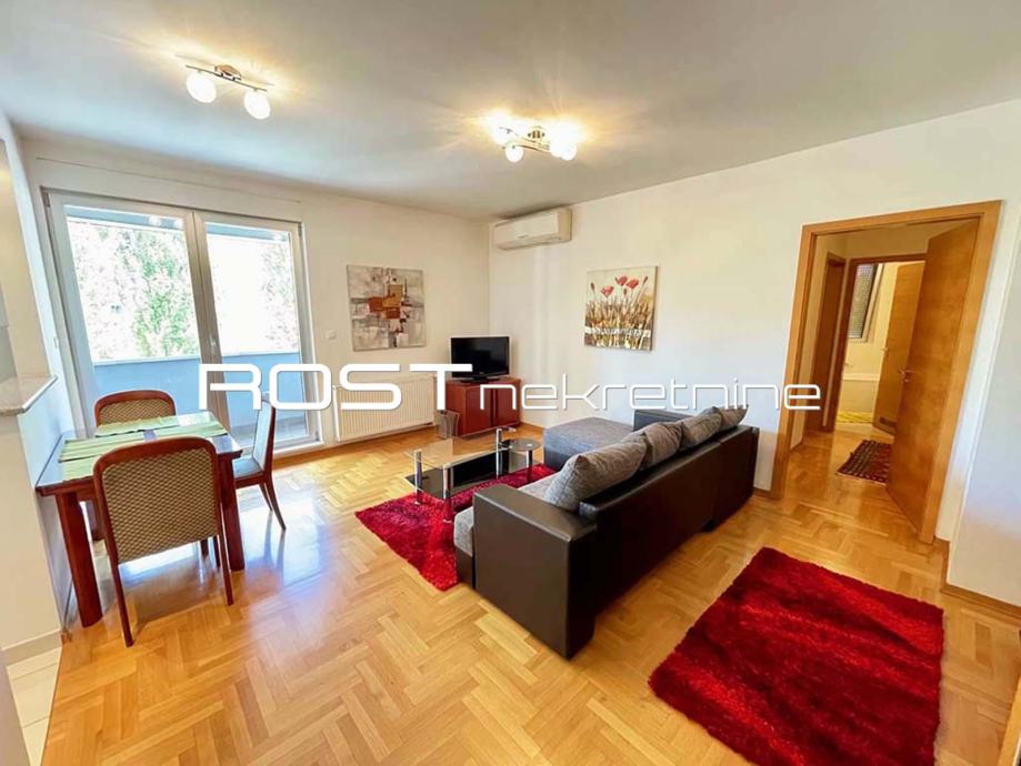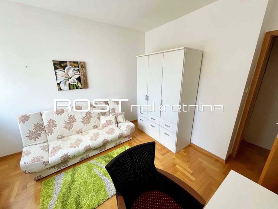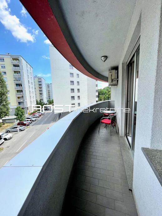 STAN SE SASTOJI od ulaznog prostora zaštićenog protuprovalnim vratima, opremljenog sa video nadzorom ulaza i namještenog sa ladičarem za obuću i zidnom vješalicom, kuhinje s pultom, atraktivnog, klimatiziranog dnevnog boravka sa IZLAZOM NA BALKON, hodnika sa ugradbenim garderobnim ormarom, spavaće sobe s bračnim ležajem, garderobnim ormarom i IZLAZOM NA BALKON, treće sobe sa klik - klak ležajem, radnim stolom sa stolicom i garderobnim ormarom, PRVE kupaonice sa kadom i WC-om, DRUGE kupaonice sa tuš kabinom i WC-om i BALKONA (7.00 m2).