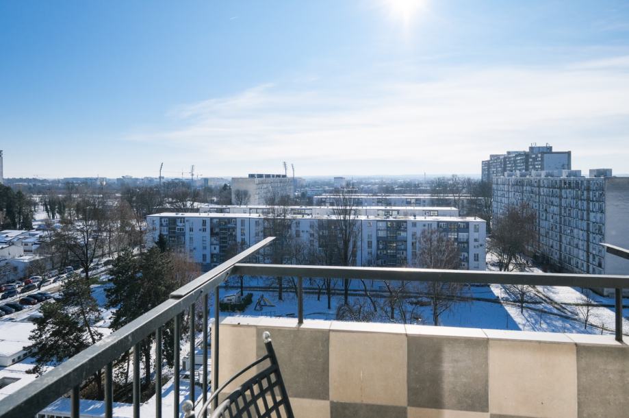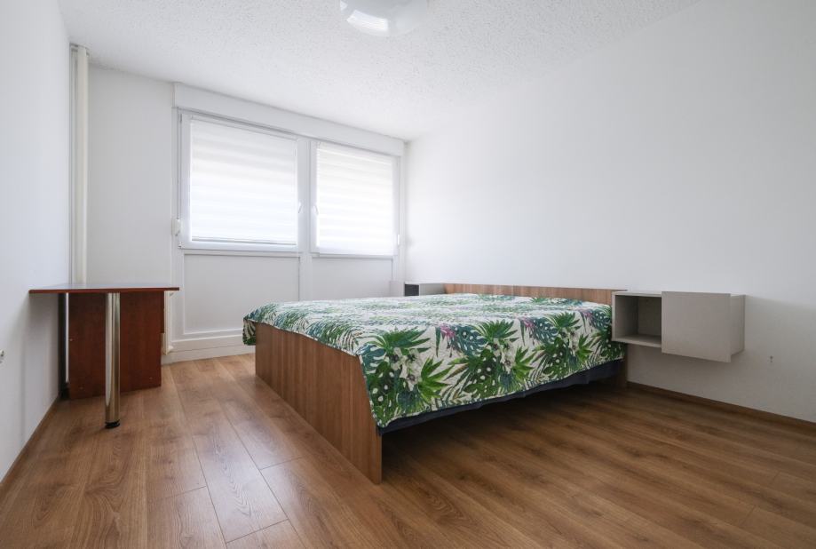 Iznajmljuje se komforan i potpuno adaptiran dvosoban stan površine 60 m², smješten na 10. katu stambene zgrade s ukupno 16 katova, u Sigetu, preko puta južnog ulaza Zagrebačkog velesajma.