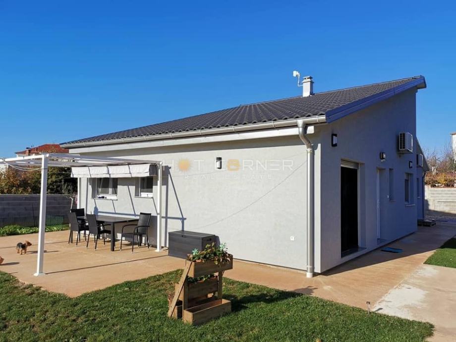 U ponudi kuća površine 115 m2 koja se nalazi u mjestu Šikići u blizini Pule. Kuća je izgrađena 2019.godine, te se sastoji od manjeg stana površine 45m2 (kuhinja,dnevni boravak, ostava,kupatilo i spavaća soba) i većeg stana površine 70 m2 (hodnik, kuhinja, dnevni boravak, 2 spavaće sobe, 2 kupatila, ostava). Kuća je sagrađena na građevinskom zemljištu površine 500 m2, te ima oko 380 m2 okućnice. Papiri uredni, građevinska dozvola izdana, a uporabna dozvola je u izradi. Kuća ima septičku jamu obujma 40 m3. Oba stana su u potpunosti klimatizirana, novi bojleri, ugrađene kuhinje i bijela tehnika Bosch, te ugradbeni ormari izrađeni po mjeri. Kuća ima potkrovlje kao spremište. Kuća ima osiguran prilazni put.