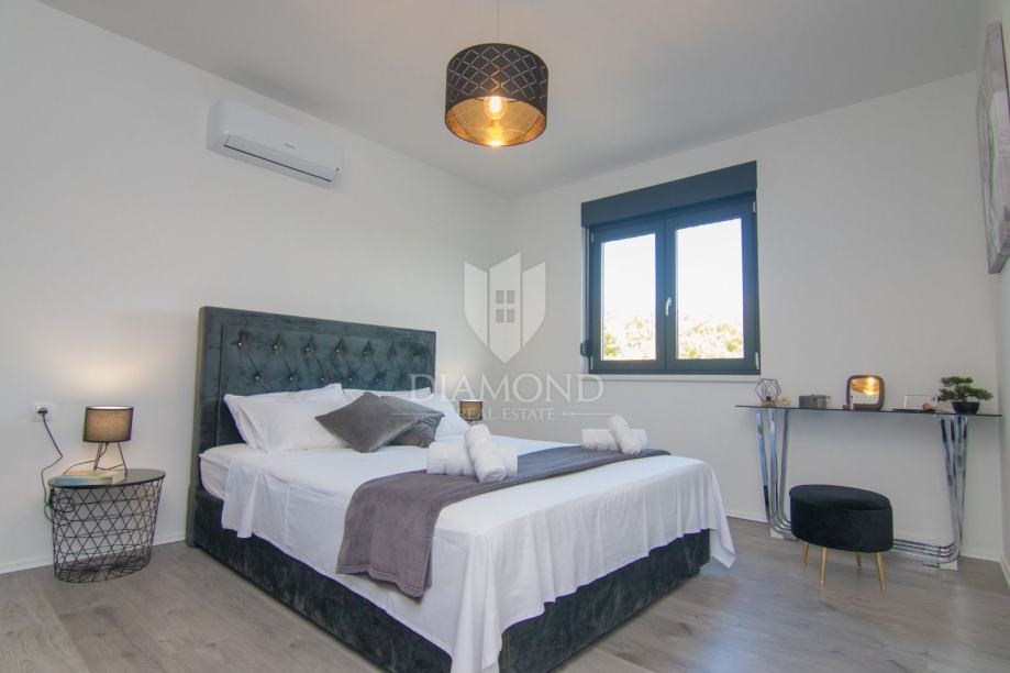 Prostrana okućnica okružena zelenilom pruža maksimalnu privatnost, dok moderno uređen bazen dodatno naglašava luksuz i funkcionalnost ove nekretnine. Kuća sa bazenom na Krku idealna je za obitelji, ali i investitore koji žele iskoristiti sve prednosti atraktivnog tržišta nekretnina na otoku Krku. Blizina mjesta poput Šila, poznatog po predivnim plažama i čistom moru, čini ovu novu kuću odličnom polaznom točkom za istraživanje cijelog otoka. Ova kuća sa bazenom na otoku Krku predstavlja savršenu kombinaciju kvalitetne gradnje, mirnog okruženja i izvanredne lokacije koja spaja prirodu, privatnost i dostupnost svih važnih sadržaja.