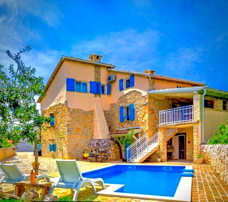 Iz široke ponude nekretnina na sjevernom Jadranu, kod agencije Stan Grad Immobilien se ističe prekrasna renovirana stara kamena kuća u atraktivnoj turističkoj regiji Otok Krk. Istaknuta kuća se nalazi na lijepoj lokaciji ne predaleko od centra poznatog mjesta Šilo na mirnoj lokaciji. Gledajući strukturno, ovo je dvojna kuća katnica s bazenom. Svojim se obuhvatom ova kuća prostire preko ukupno 2 etaže. Nekretnina obuhvaća ukupnu površinu od 200 m2. Ovom površinom su obuhvaćeni dnevni boravak i kuhinja, 4 spavaće sobe, 4 kupaonice, velika natkrivena terasa. Unutrašnji prostor nekretnine je kompletno opremljen najsuvremenijim dizajnerskim namještajem te uređajima i tehničkom opremom posljednje generacije. Dodanu vrijednost ovom cijelom objektu daje okućnica od 1090 m2 oplemenjena bazenom i sunčalištem te sjenicom. U okviru natkrivenog parkirnog prostora na okućnici nekretnine moguće je komforno parkiranje više vozila. Ova nekretnina je u vlasništvu fizičke osobe i na ime njenog prijenosa kupac kuće je u obvezi plaćanja poreza na promet nekretnine u visini 3%. Prodavatelj nekretnine jamči urednu građevinsku i vlasničku dokumentaciju te brz prijenos nekretnine na ime kupca. Posjetite nas na otoku Krku i pobrinut ćemo se da osjetite zadovoljstvo svih naših klijenata. Odlučite li se za nas, agencija Stan Grad Immobilien će vam sa zadovoljstvom pomoći u prijenosu vlasništva nekretnine, kao i računa za struju, vodu i komunalne usluge na svoje ime.