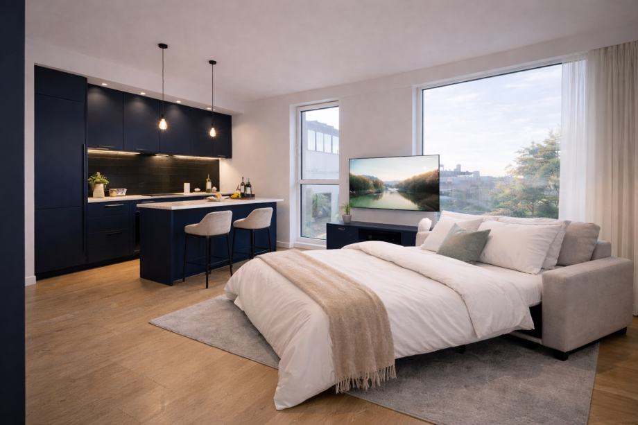 Prodaje se moderan jednosobni stan u kvalitetnoj novogradnji, idealan za stanovanje ili investiciju. Stan obiluje prirodnim svjetlom zahvaljujući velikim staklenim površinama i pažljivo osmišljenom rasporedu.