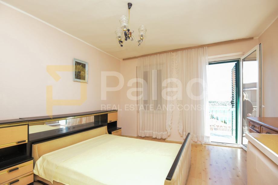 Unutrašnjim stubištem pristupa se gornjoj etaži, na kojoj se nalaze dvije spavaće sobe. Jedna manja soba, sjeverne orijentacije i druga velika, glavna spavaća soba sa izlazom na vanjsku terasu, sa koje se pruža predivan pogled na cijeli šibenski kanal. Savršena mala terasa, kao stvorena za uživanje posebno je očaravajući detalje ove nekretnine.