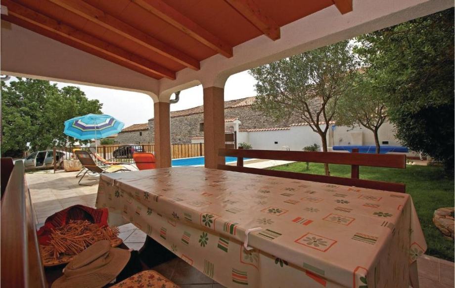 Na lijepo uređenoj i ograđenoj okućnici smjestio se bazen, zasebno spremište, vanjski tuš, roštilj i natkriveno parkiralište.
