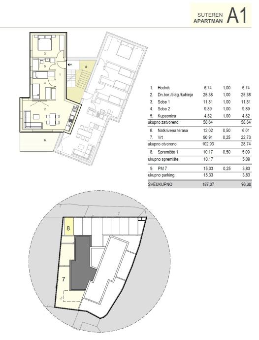 - stanu pripada vrt površine 91 m2 i jedno parkirno mjesto površine 15,30 m2,