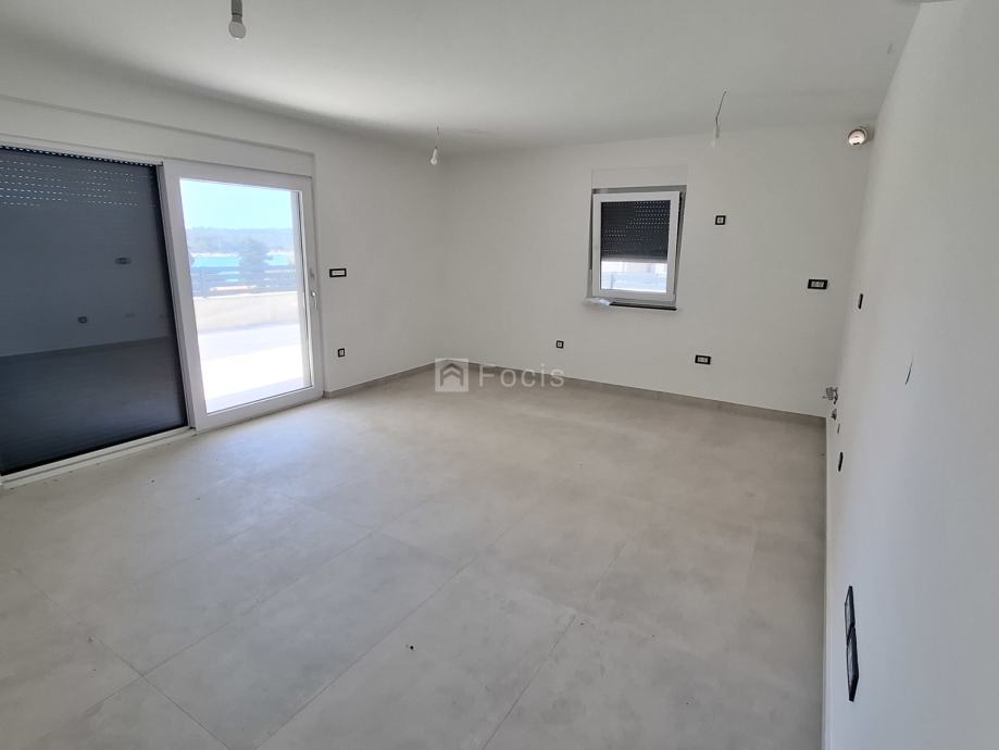 Prodaje se stan u prizemlju koji se sastoji od hodnika, dnevnog boravka s blagovaonicom i kuhinjom, dvije spavaće sobe te kupaonice, ukupne neto korisne površine 56,80 m2. Stanu pripadaju natkrivena terasa (15,50 m2), vrt (90,57 m2), spremište (9,00 m2) te parkirno mjesto (14,41 m2). Sveukupna površina iznosi 186,28 m2, odnosno 95,29 m2 neto korisne vrijednosti.