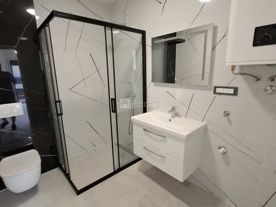 Prodaje se stan na drugom katu koji se sastoji od hodnika, dnevnog boravka s blagovaonicom i kuhinjom, tri spavaće sobe te dvije kupaonice, ukupne neto korisne površine 78,69 m2. Stanu pripadaju dvije loggie (11,34 m2 i 2,60 m2) te dva parkirna mjesta, (14,00 m2) i PM 4 (14,00 m2). Sveukupna površina iznosi 120,63 m2, odnosno 96,15 m2 neto korisne vrijednosti.