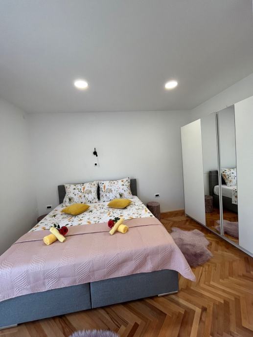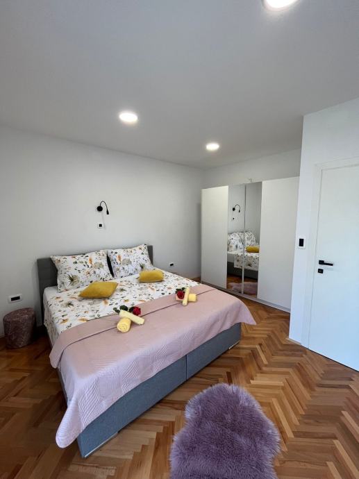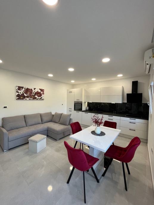 Stan se nalazi na 1. katu kuće, ima 60 m2, a sastoji se od dvije spavaće sobe, kuhinja s blagovaonom, dnevnog boravka, kupaonice i balkona. Stanu priprada jedno parkirno mjesto ispred.