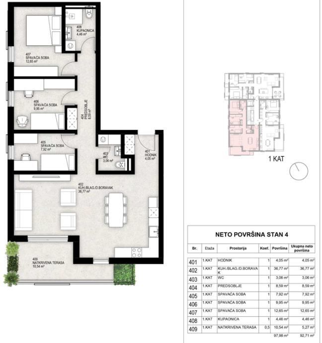 Ukupna obračunska površina: 97,98 m²