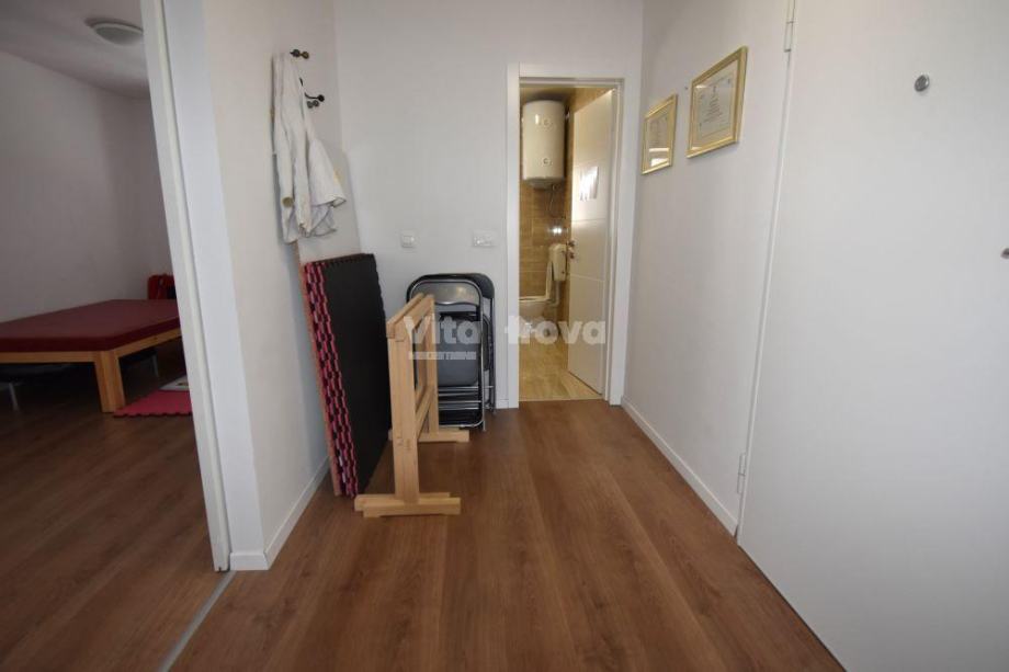 Prostor je funkcionalno organiziran u tri radne prostorije, ulazni prostor/čekaonicu, kupaonicu i balkon, a dodatnu praktičnost pruža čajna kuhinja. Po potrebi, raspored se može prilagoditi – postojeće pregrade moguće je ukloniti ili dodatno pregraditi, prema dogovoru s vlasnikom.