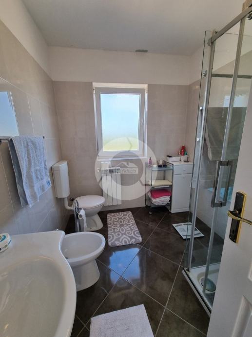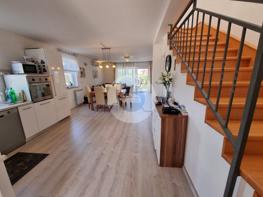 ŠIRA OKOLICA POREČA!!! U jednom istarskom gradiću, na mirnoj lokaciji, sa otvorenom pogledom na prirodu, prodaje se kuća prva u nizu od 105,75 m2 sa vlastitom okućnicom od 290 m2. Građena je 2008. godine. Sastoji se od prizemlja i kata. U prizemlju se nalazi hodnik, wc+praona, tehnička soba, ostatak prostorije prizemlja je jedan veliki prostor u kojemu je kuhinja, blagovaona i dnevni boravak sa kaminom, spremište. Iz dnevnog boravka se izlazi na terasu i u vrt. Na katu se nalaze tri spavaće sobe, dvije sa vlastitim balkonom, te velika kupaona sa tušem. U kući je provedeno centralno grijanje na struju, i na svakom katu je po jedna klimatska jedinica. Kuća je vrlo dobro očuvana, prodaje se kompletno sa namještajem i opremom. Stanu pripadaju i 2 parkirna mjesta.