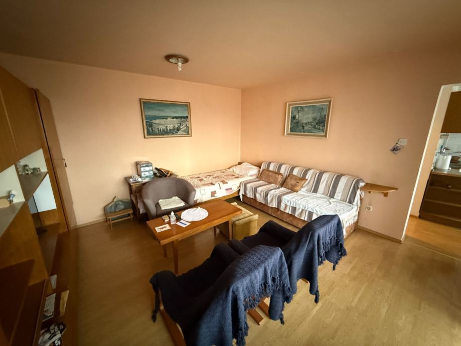 Prodaje se jednosoban stan, površine 40 m2, na trećem katu zgrade. Stan se sastoji od jedne sobe, kuhinje, hodnika, kupaonice, ostave, balkona (lođa) i podruma. Stan je funkcionalnog rasporeda sa orjentacijom prema istoku. Centralno grijanje i topla voda (toplinarstvo). Zgrada je uredna i održavana. Vlasništvo uredno, 1/1, bez tereta.