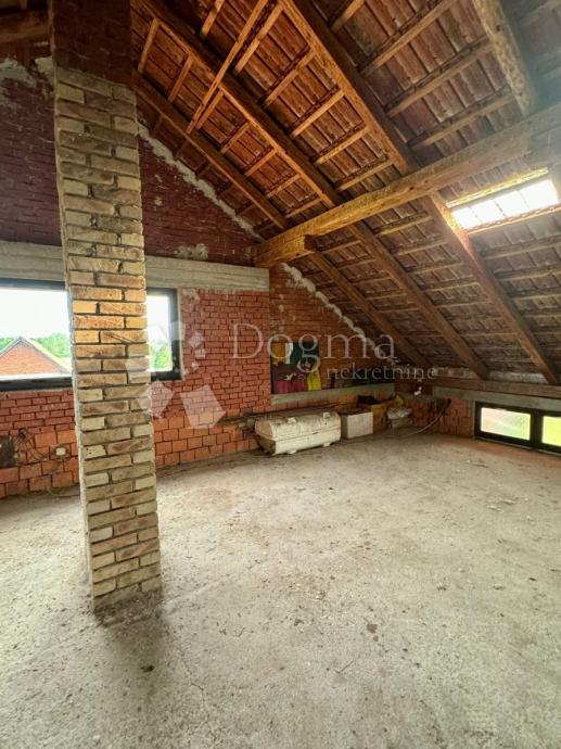 Na prodaju je prekrasna dvokatnica smještena u mirnom okruženju blizu Velike Gorice, idealna za obiteljski život ili poslovne aktivnosti. Ova prostrana kuća nudi pet spavaćih soba, veliku blagovaonicu, prostrani dnevni boravak, funkcionalnu kuhinju, prostrano predsoblje, dvije kupaone i jedan dodatni WC. Uz to, visoko potkrovlje pruža dodatni prostor za vaše potrebe.