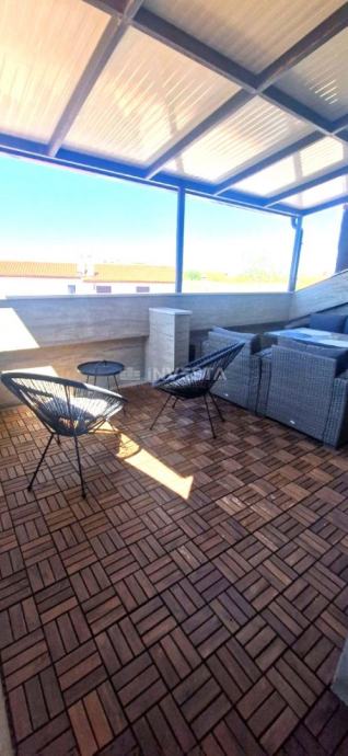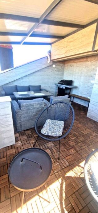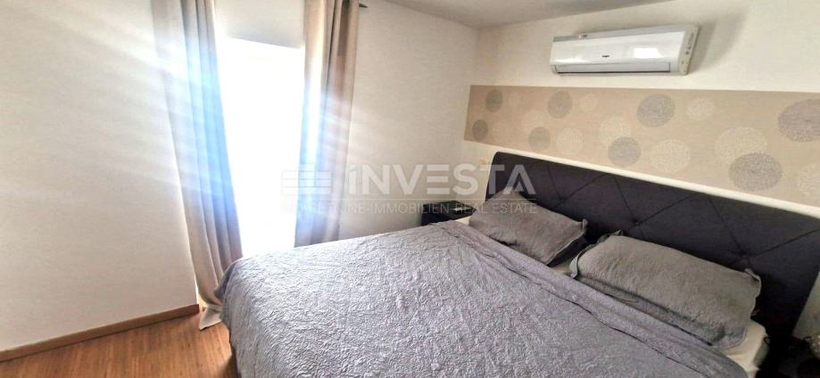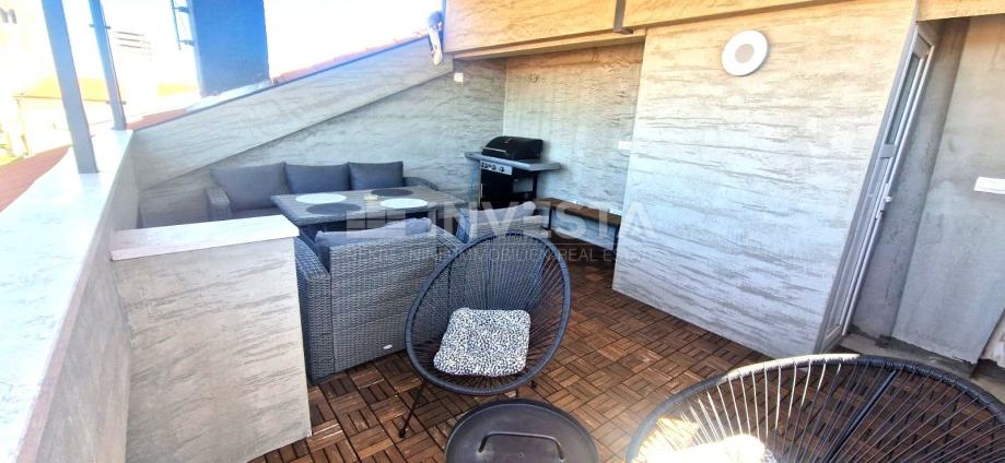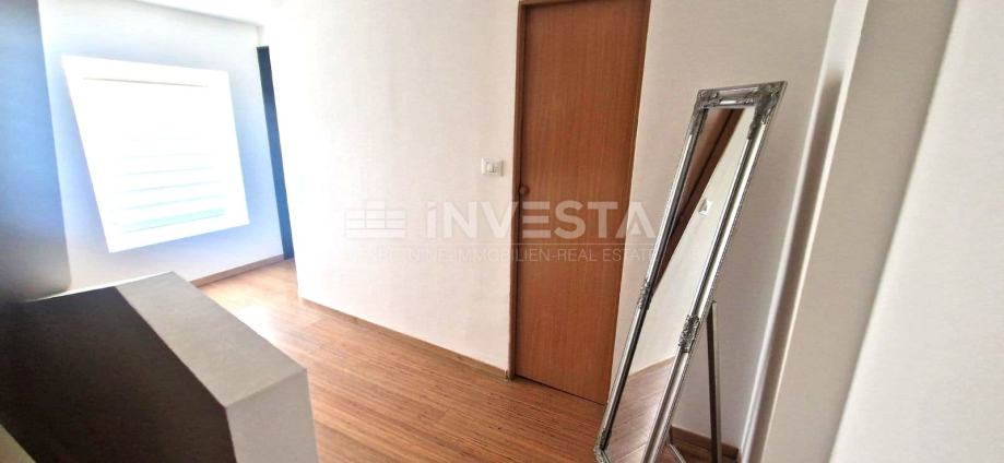 Kuća se sastoji od 130m2 stambenoga prostora podijeljenih na četiri etaže, prizemlje, prvi i drugi kat sa predivnom i prostranom natkrivenom terasom u potkrovlju kuće od 20m2. Etaža u prizemlju sastoji se od predsoblje, prostrane kuhinje, blagovaonice i dnevnog boravka. Sve etaže kuće povezane su unutarnjim stubištem. Na prvom katu je jedna spavaća sobu s vlastitom kupaonicom i odvojeni gostinjski WC. Na drugoj etaži su dvije spavaće sobe i prostor u kojem postoji mogućnost izrade dodatne kupaonice. U potkrovlju kuće je velika natkrivena terasa sapogledom na more, opremljena roštiljem i ljetnom garniturom za sjedenje.