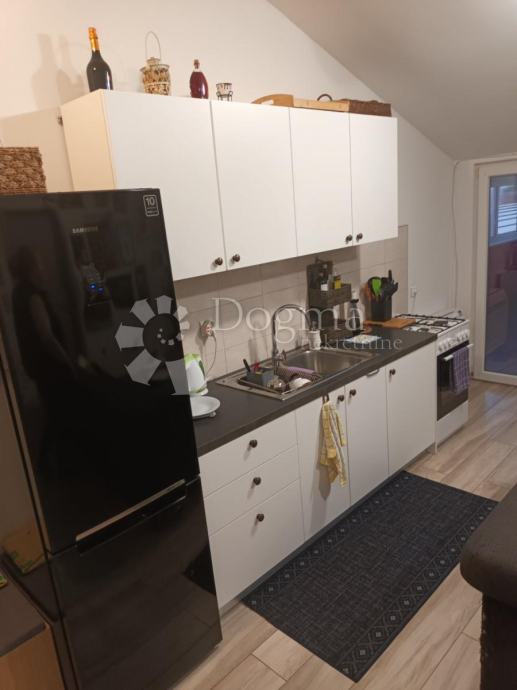 Na gornjoj etaži nalaze se dva stana od kojih jedan površine 61,21 m² i sastoji se od spavaće sobe, dječje sobe, dnevnog boravka, kuhinje, kupaonice i natkrivenog balkona od 6,25 m².