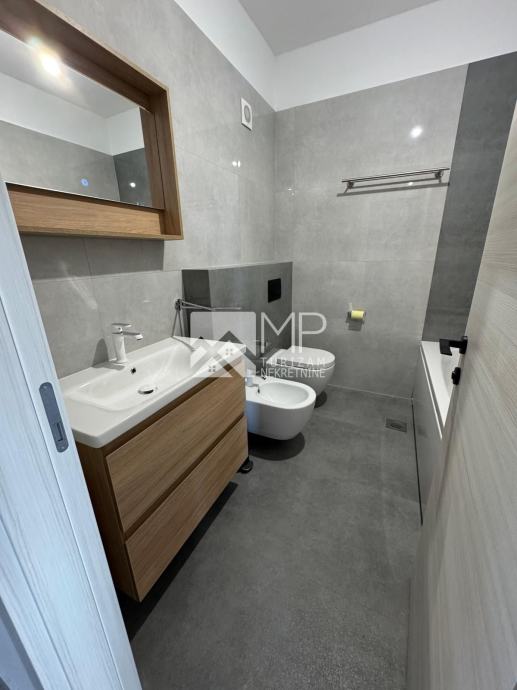 Na prodaju je stan u prizemlju koji se sastoji od: hodnika, prostranog dnevnog boravka i kuhinje s blagovaonom koji su povezani sa terasom, 3 spavaće sobe, 2 kupaonice i 2 ostave.