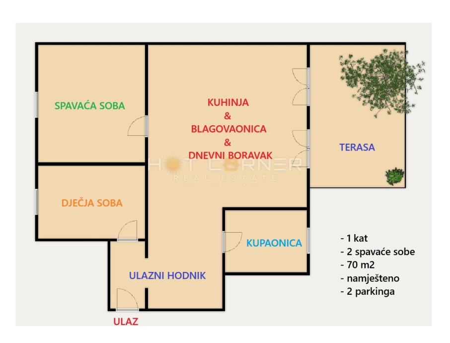 dolaze i 2 vanjska natkrivena parking mjesta.