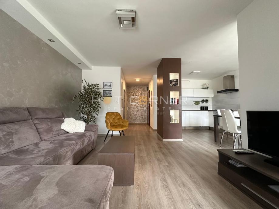 Stan je ukupne površine 77 m2, te se sastoji se od 3 spavaće sobe, dnevnog boravka,