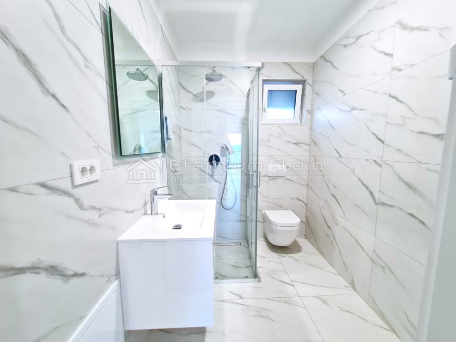 U gradnji su korišteni prvoklasni materijali, što znači da je stan opremljen protuprovalnim vratima, podnim grijanjem (sve prostorije), prvoklasnom keramikom i sanitarijama, led rasvjetom, vrhunskom PVC stolarijom sa komarnicima i elektro pokretanim roletama te klimom.