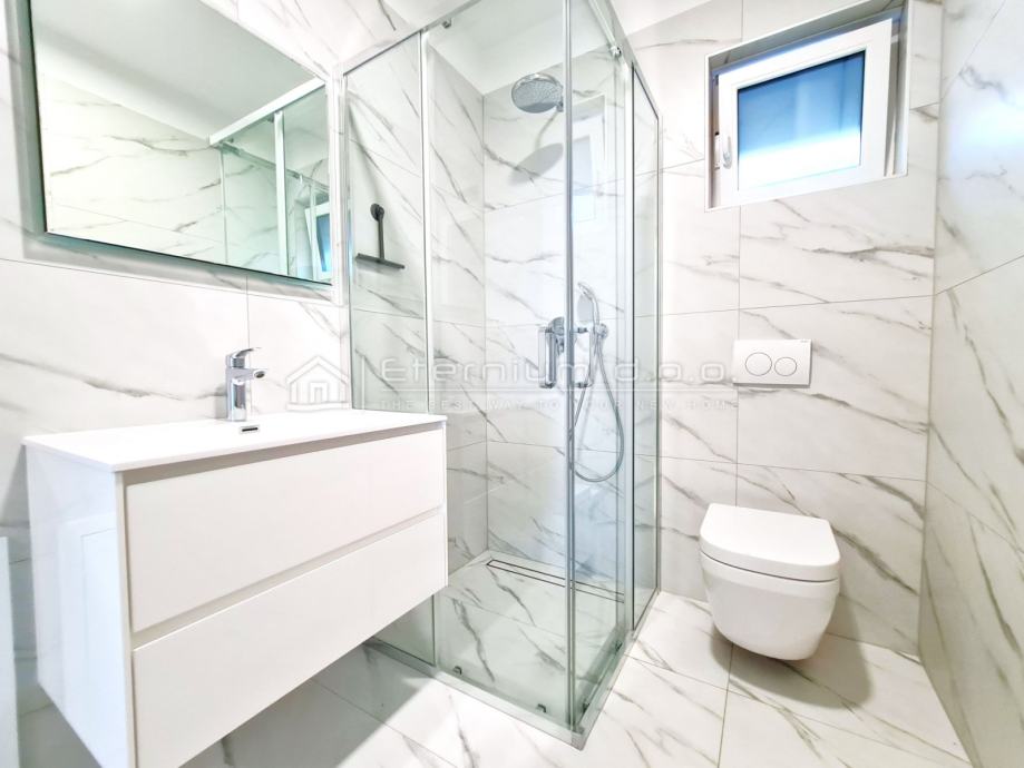 Prodajemo stan koji se nalazi na prvome katu luksuzne moderne novogradnje smještene nedaleko od mora. Njegova pozicija garantira mir i u najvećim gužvama odnosno sezoni, a pruža trajni i neometani panoramski pogled na more.