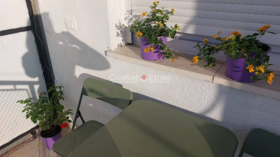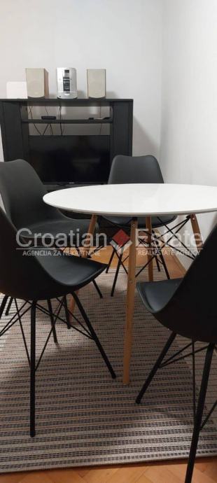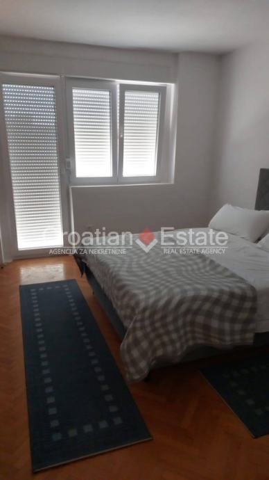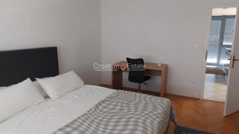 Iznajmljujemo jednosobni stan stambene površine 45 m2 smješten na petom katu zgrade bez lifta. Stan se sastoji od kuhinje s blagovaonicom i dnevnim boravkom, spavaće sobe, kupatila i dvije lođe.