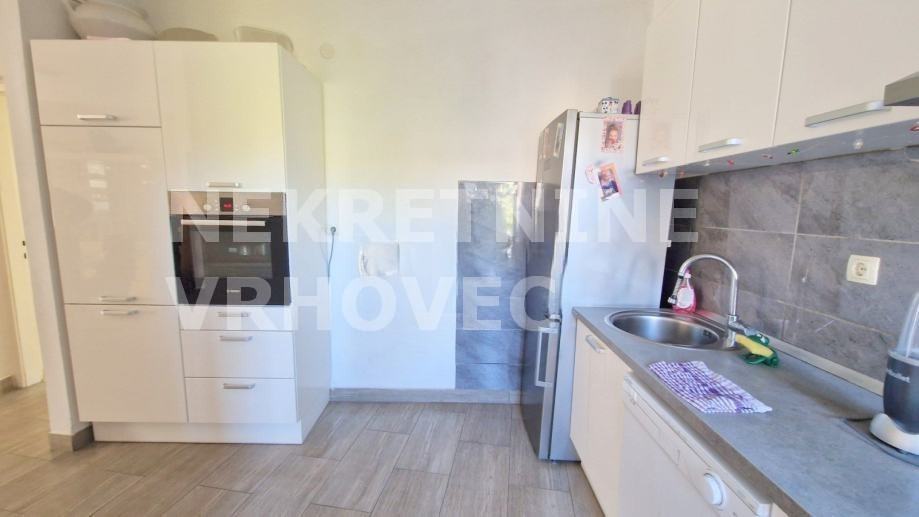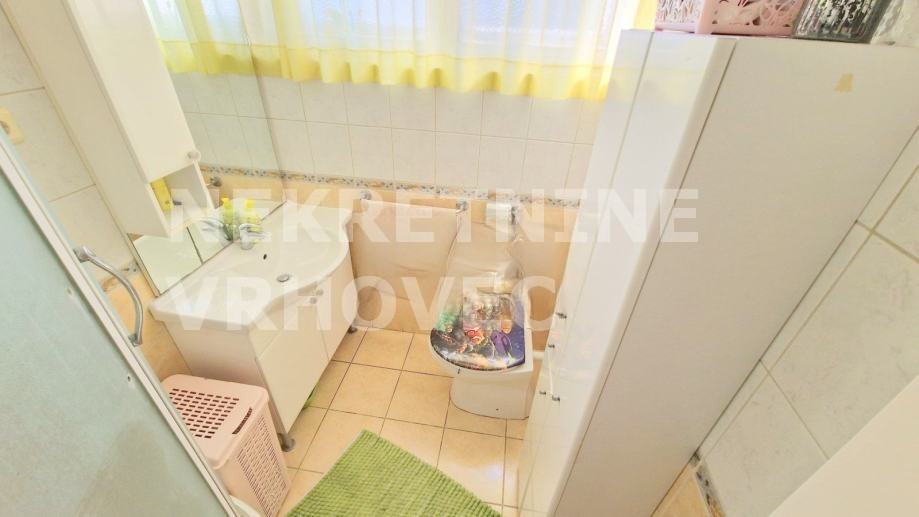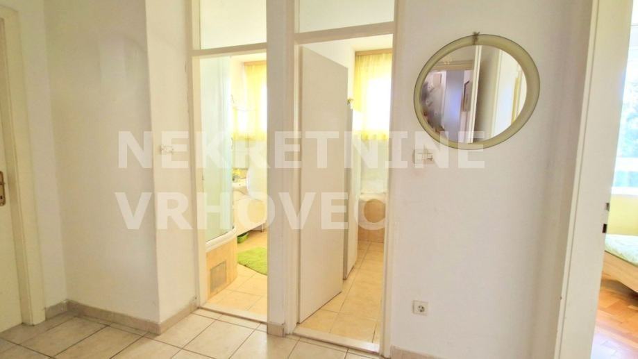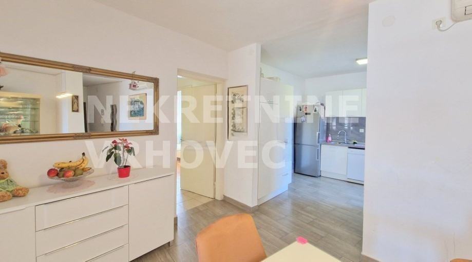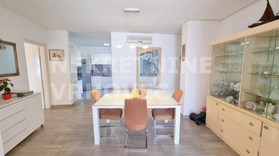 Sastoji se od dnevnog boravka s izlazom na južnu lođu, blagovaonice, kuhinje, dvije spavaće sobe te treće manje sobe, kupaonice i wc-a.