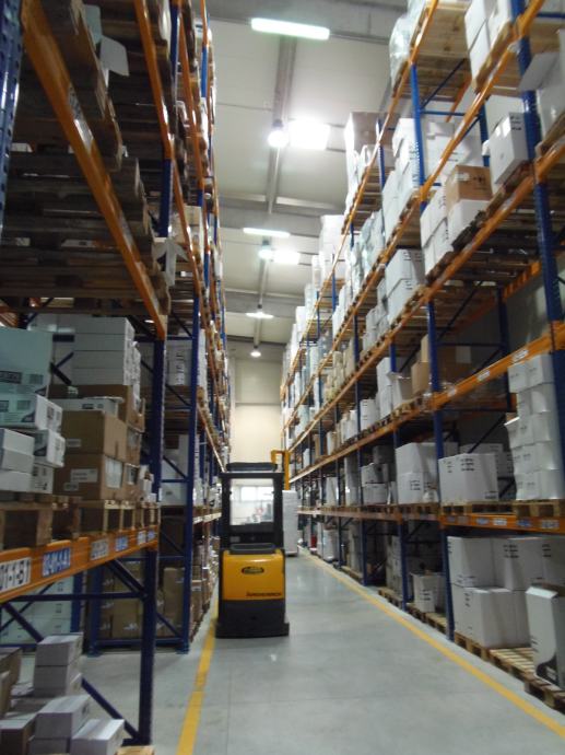 Skladište ima ukupno 1.504 m2 korisnog prostora, odnosno nepunih 16.000 m3. Manipulativni prostor ima cca 220 m2 i 3 utovarno istovarne rampe Horman. Sami skladišni prostor ima 955 m2 u kojem se nalaze regali koji imaju 1628 paletnih mjesta. Jedna trećina je visine 2,20 m a dvije trećine su palete visine 1,20 m. Sveukupno u regale može stati ukupno 33 šlepera. U podu su ugrađene posebne cijevi za grijanje poda skladišta na bazi centralnog grijanja. U prizemlju je kotlovnica za centralno grijanje na plin.