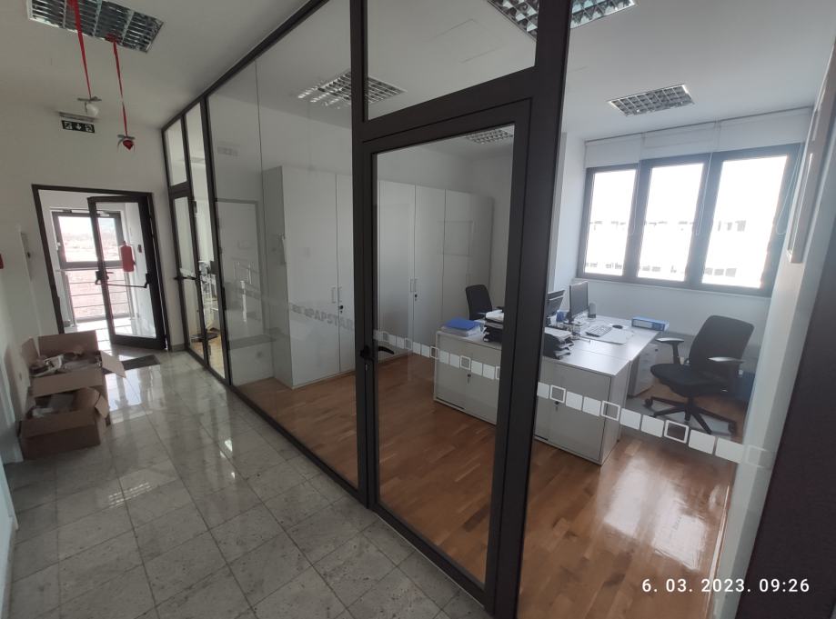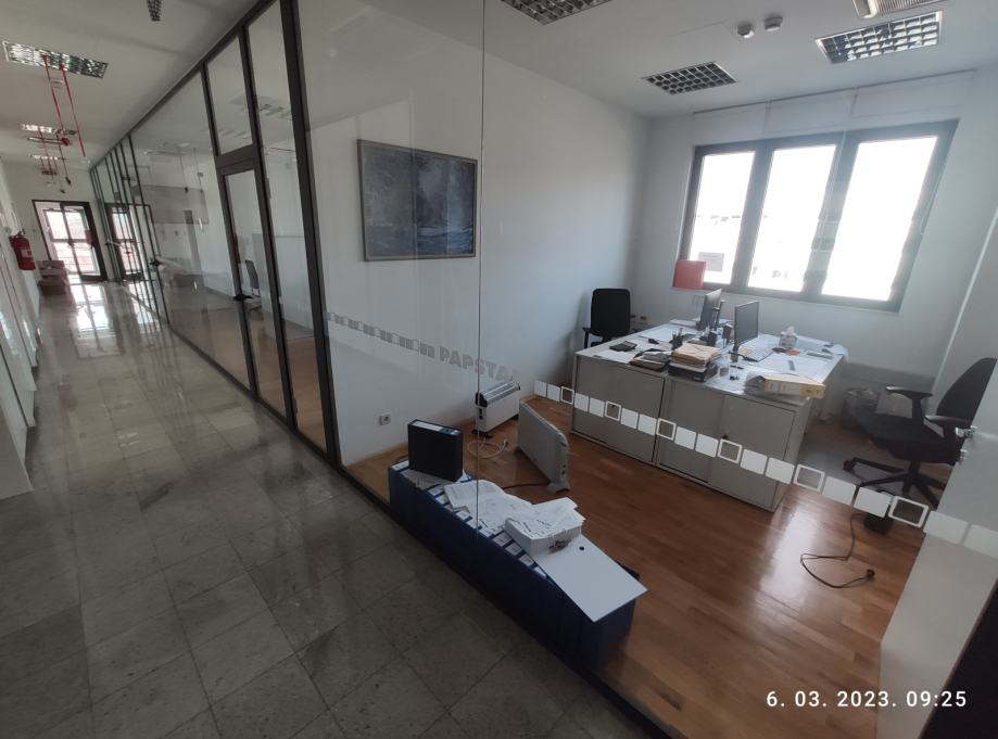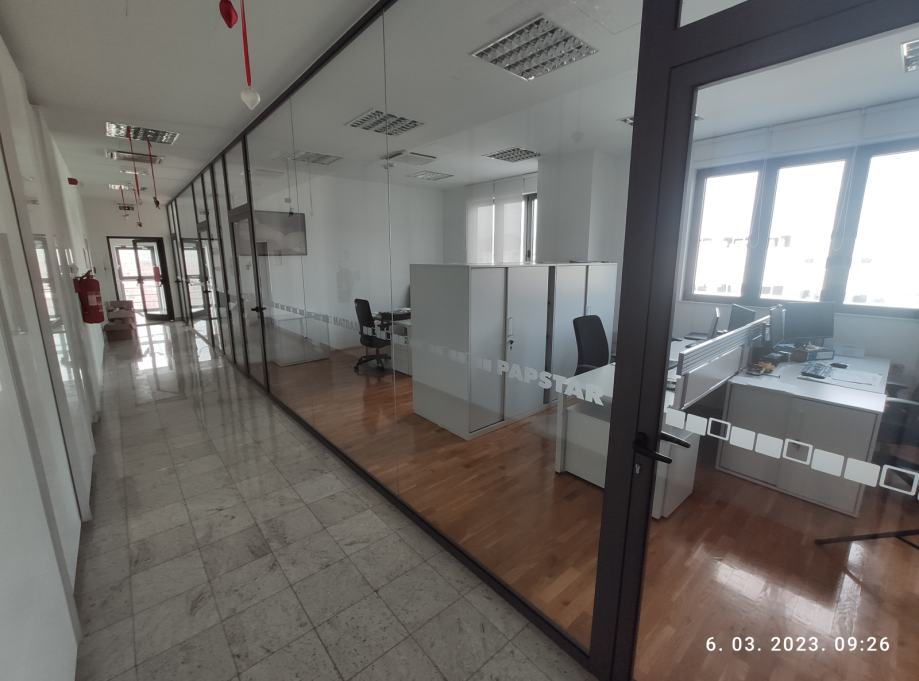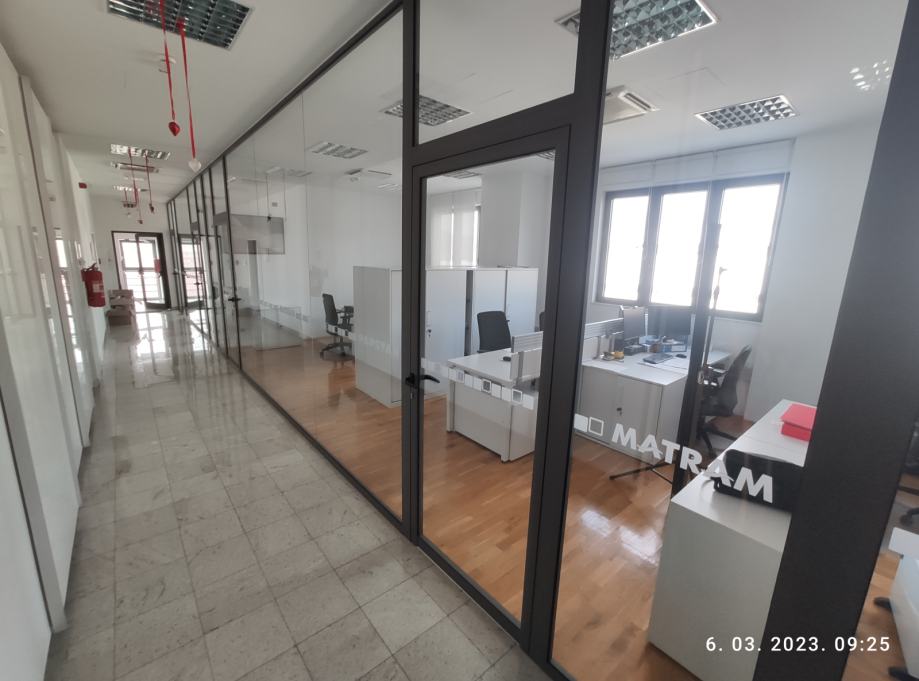 Stepenicama se penje na kat gdje se nalazi pet ureda s namještajem, salon uzoraka sa salom za sastanke, muški i ženski WC, čajna kuhinja. sistem soba – server i protupožarna zaštita, te jedna ostava.