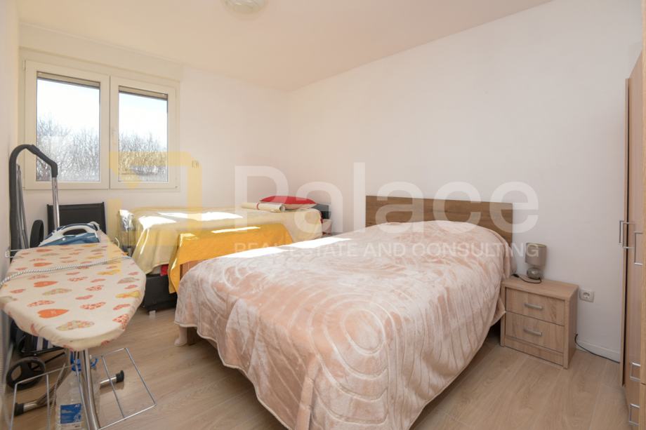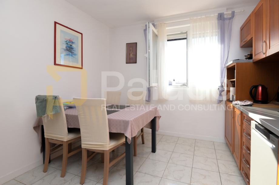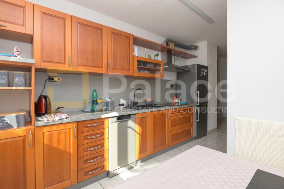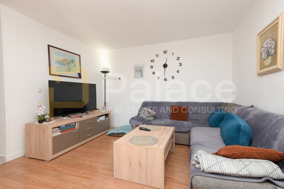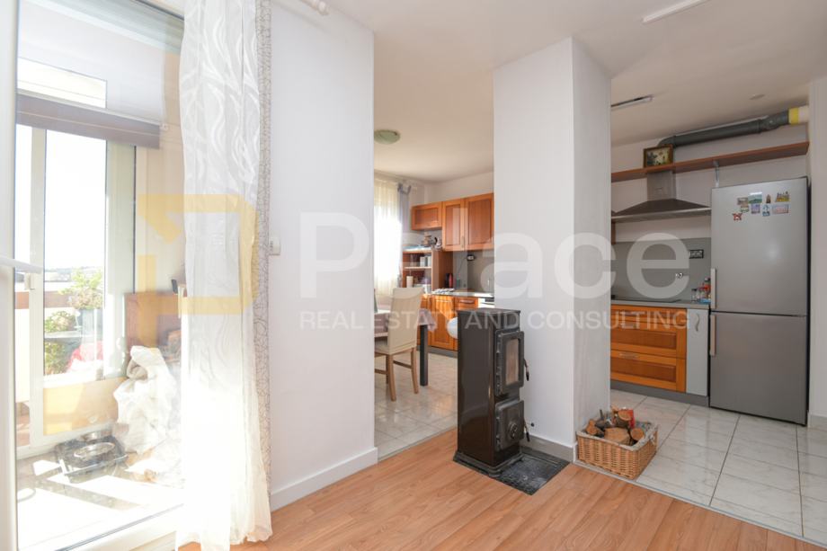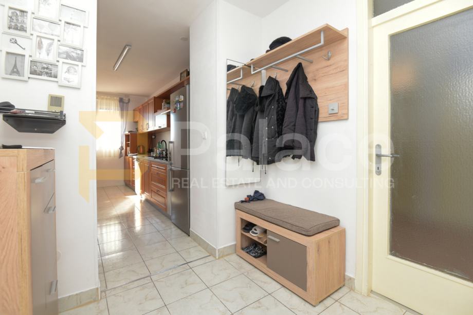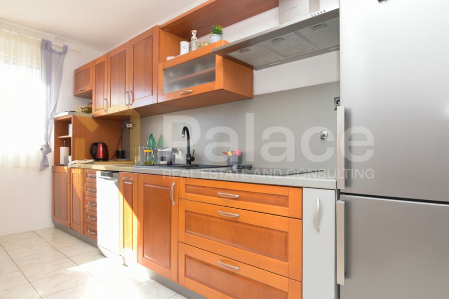 Stan se sastoji od ulaznog prostora, ostave, kuhinje s blagovaonicom, dnevnog boravka s izlazom na ostakljenu lođu i otvoreni balkon, čak 3 spavaće sobe od kojih je jedna jako komforna, kupaonice i predsoblja. Stanu pripada i drvarnica cca 7-8 m2 u podrumu zgrade. Stan je renoviran prije 2 godine, skladno je i potpuno namješten te opremljen svim potrebnim aparatima. U dnevnoj sobi je klima uređaj za hlađenja, a za grijanje se osim klime, može koristiti i peć na drva. Na prozorima je PVC stolarija s komarnicima i roletama. Na podovima je kvalitetan parket i keramika.