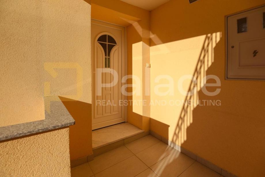 Ovaj novouređen stan nalazi se na prvom katu višestambene kuće s odvojenim ulazom kojem se pristupa vanjskim stepeništem.