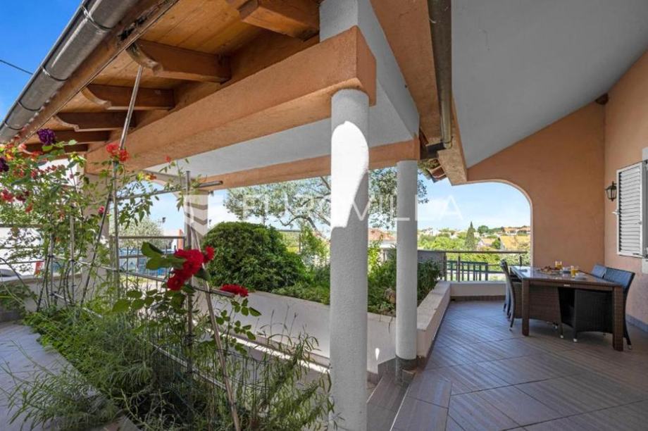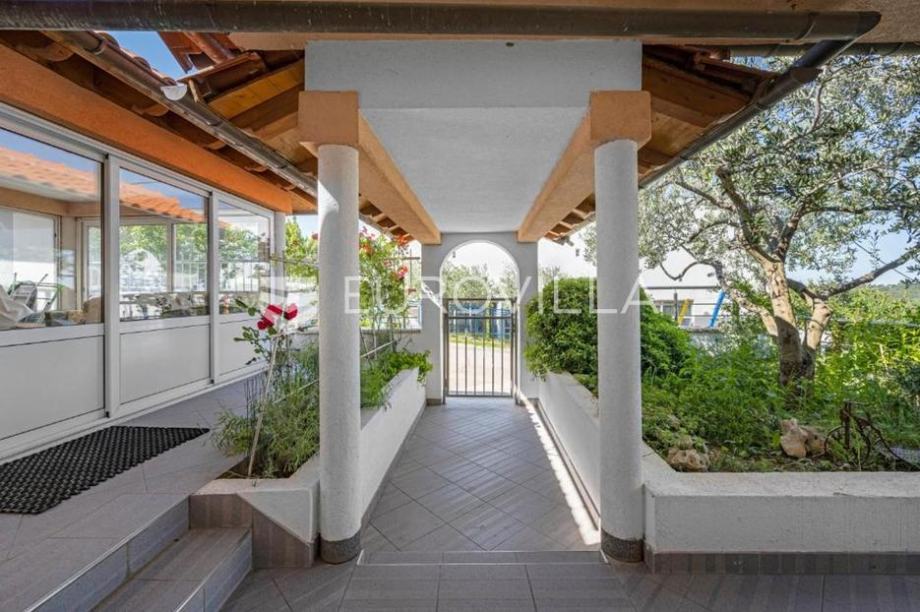 Skradin, Dubravice, kuća sa 7 apartmana i velikim bazenom, izgrađena na parceli površine 2556 m². Okružena je velikim dvorištem i maslinikom. Prodaje se potpuno namještena i opremljena, spremna za odmor ili za nastavak uspješne djelatnosti najma.Kuća uz podrum ima i 3 stambene etaže na kojima se nalazi 5 apartmana s jednom spavaćom sobom, kupaonicom i dnevnim boravkom s kuhinjom. Uz te apartmane kuća i dva velika stana po 200 m². Jedan ima 3 spavaće sobe, dvije kupaonice i dnevni boravak s kuhinjom i blagovaonicom. Drugi ima 4 spavaće sobe, dvije kupaonice i dnevni boravak s kuhinjom i blagovaonicom. Na imanju je još i dodatni pomoćni objekt za smještaj osoblja, površine 50 m².Pokraj kuće se nalazi veliki bazen sa sunčalištem uz koji je vanjska kuhinja i stol za 20 ljudi. U dvorištu je još i prostor za opuštanje sa stolom za biljar. Kuća ima 10 natkrivenih parkirnim mjesta.Kuća se nalazi na odličnoj lokaciji, u blizini Skradina i Nacionalnog parka Krka.Za sve ostale informacije stojimo vam na raspolaganju....
