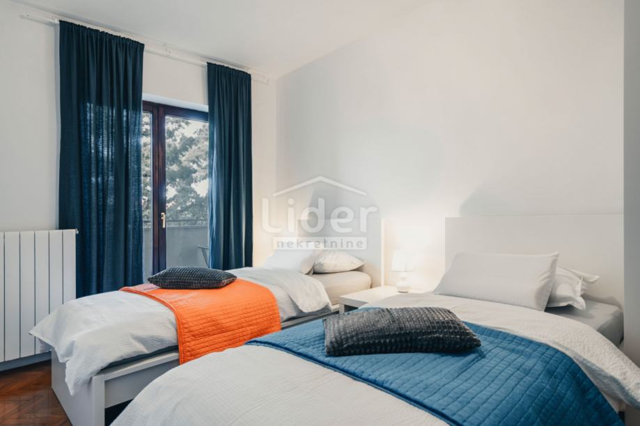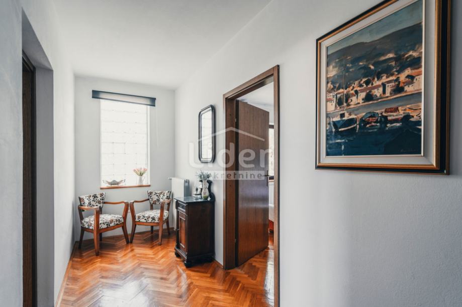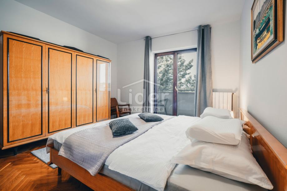 Na katu su 3 spavaće sobe i kupaonica. Dvije spavaće sobe imaju „bračni“ krevet, a jedna ima 2 odvojena kreveta – ukupno za 6 osoba. Dvije sobe imaju izlaz na natkriveni balkon.Kući pripadaju 2 parkirna mjesta, na otvorenom parkingu.