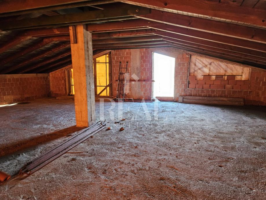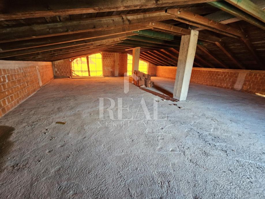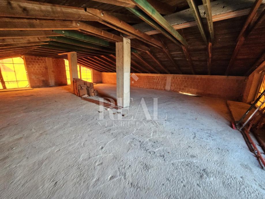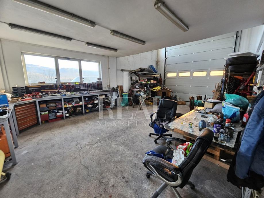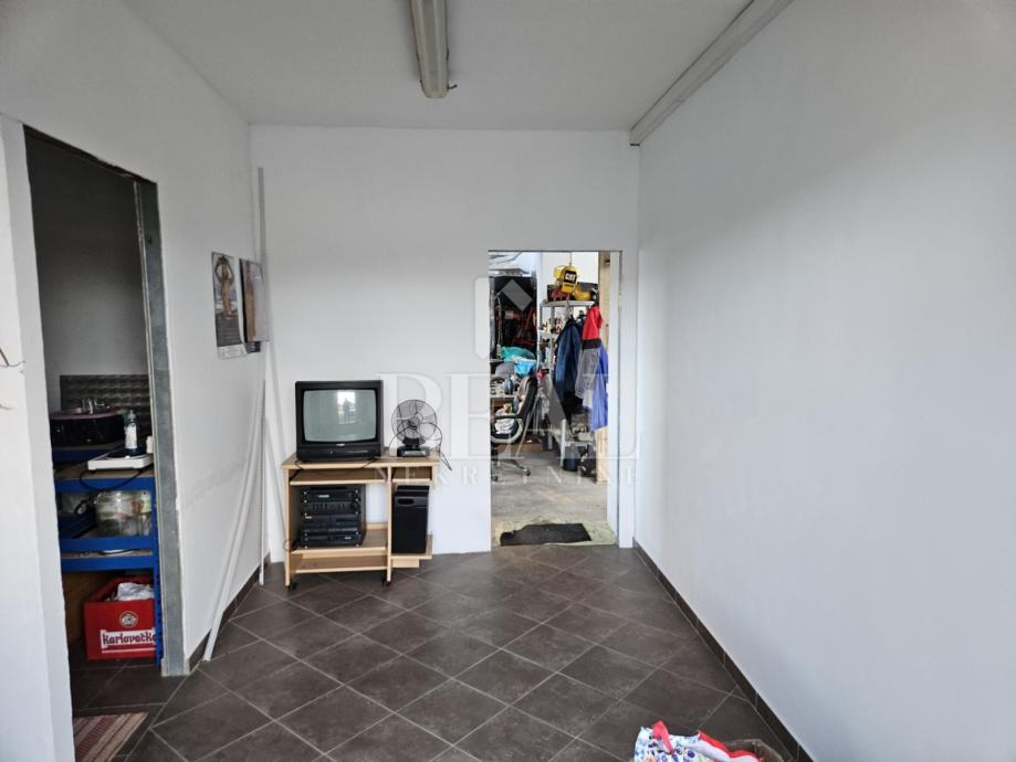 Hala za skladište ili proizvodnju površine 360 m2 koja se sastoji od dva prostora u prizemlju, na među katu dva ureda i poseban ulaz za 120 m2 u potkrovlju za stan ili poslovni prostor. Hala je sagrađena na parceli od 1767 m2 ima pristupni put, struja ,voda i sve što je potrebno za industrijsku zonu .