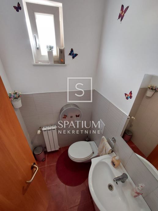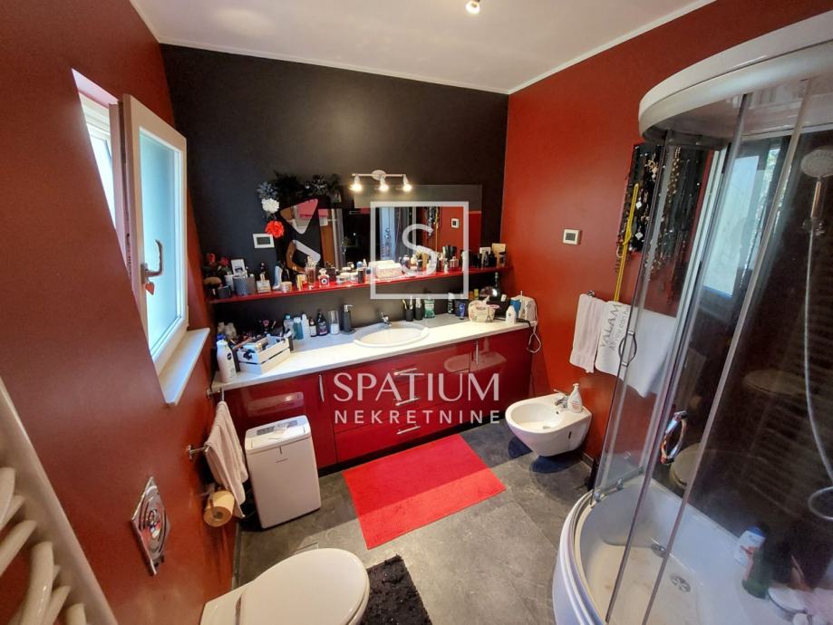 ŠKRLJEVO, BAKAR, u ekskluzivnoj ponudi imamo kuću s lijepo uređenom okućnicom, konobom i garažom koja je jednim ulazom povezana sa stambenim dijelom. U dvorištu se nalazi prostor za druženje s roštiljem i krušnom peći. Stepenice iz dvorišta vode do ulaza na veliku i prostranu terasu s koje se pruža pogled na more. Stambeni dio sastoji se od 240 m2 u kojem se nalazi veliki dnevni boravak, kuhinja, blagovaona, četiri sobe (od kojih se u jednoj nalazi kupaona, balkon i vešeraj), još jedna kupaona i dva toaleta. Sa stražnje strane kuće nalaze se stepenice koje vode do tavana stajaće visine. Kuća se prodaje u potpunosti namještena, opremljena je suvremenim kućanskim aparatima, dizalicom topline i solarnim panelima.