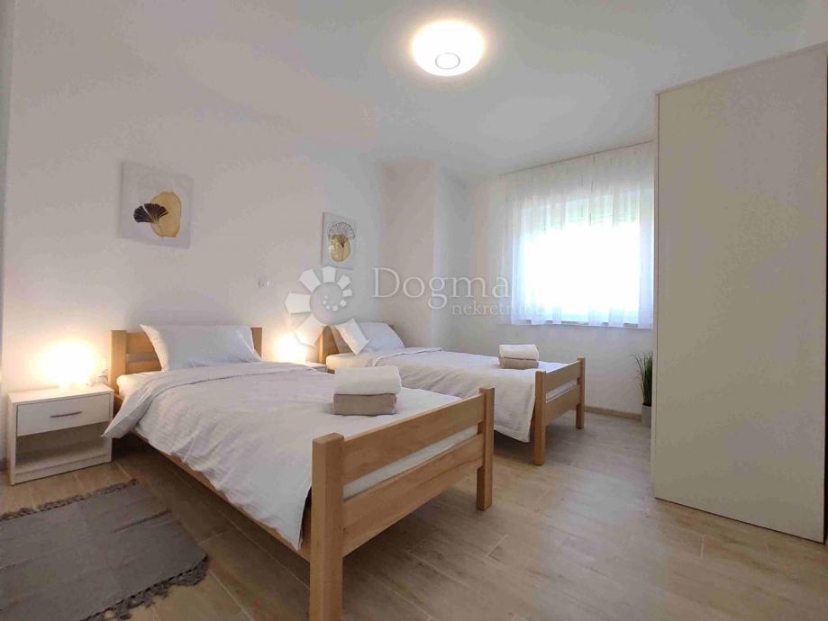 Stan je potpuno namješten, a sastoji se od 3 spavaće sobe, prostrane kupaonice, pomoćnog wc-a, prostranog dnevnog boravka s izlazom na terasu i kuhinje s izlazom na balkon.