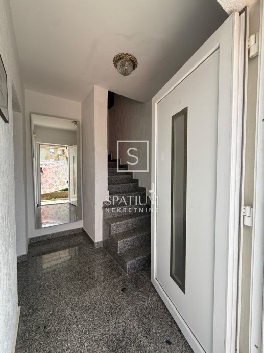 ŠKURINJE, u ponudu smo dobili kuću u nizu. Prostire se na dvije etaže - prizemlje + kat. Stan u prizemlju te stan na katu imaju svaki svoj ulaz kroz mali zajednički hodnik. Prizemlje kuće površine je 100m2 te se sastoji od prostranog dnevnog boravka, kuhinje, tri spavaće sobe, kupaonice, spremišta i malog ulaznog hodnika.
