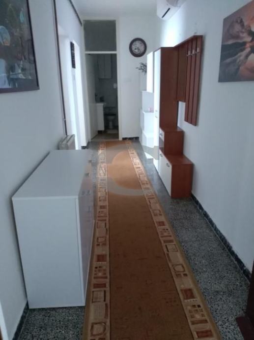 Stan je na 1. katu i potpuno namješten (perilica za rublje i posuđe, SAT TV), grijanje na struju (inverter klima Daikin), internet free.