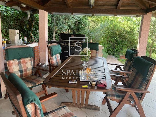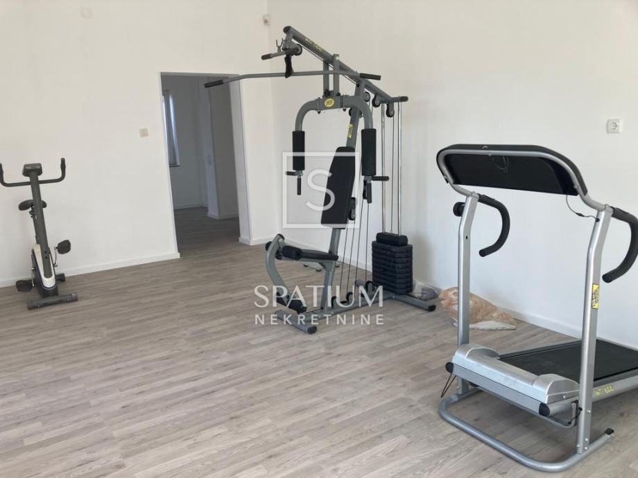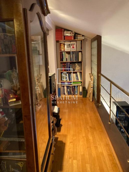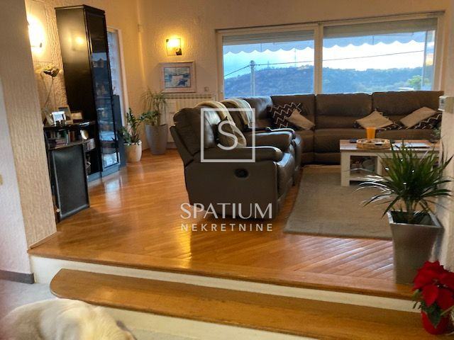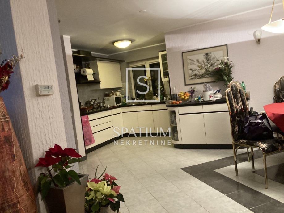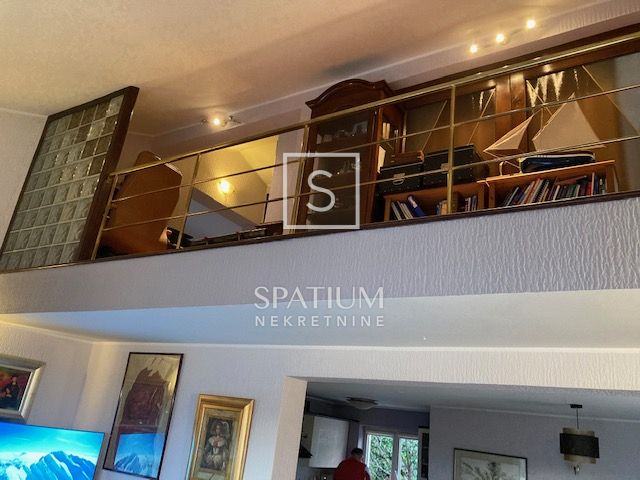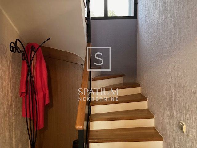 Prizemlje kuće trenutno sadrži manji stan u roh-bau verziji s jednom spavaćom sobom, kupaonicom, kuhinjom, blagovaonicom i prostranim dnevnim boravkom koji vodi na natkrivenu terasu. Vanjskim stepenicama dolazi se do prvog kata gdje se nalazi potpuno opremljen dvoetažni stan, spreman za useljenje. Donja etaža ovog stana nudi kuhinju, dnevni boravak, spavaću sobu, kupaonicu, hodnik i dodatnu sobu te veliki balkon južne orijentacije s izlazom na terasu gdje se nalaze bazen, sjenica i prostor za druženje. Gornja etaža sadrži dodatnu spavaću sobu, galeriju i kupaonicu.