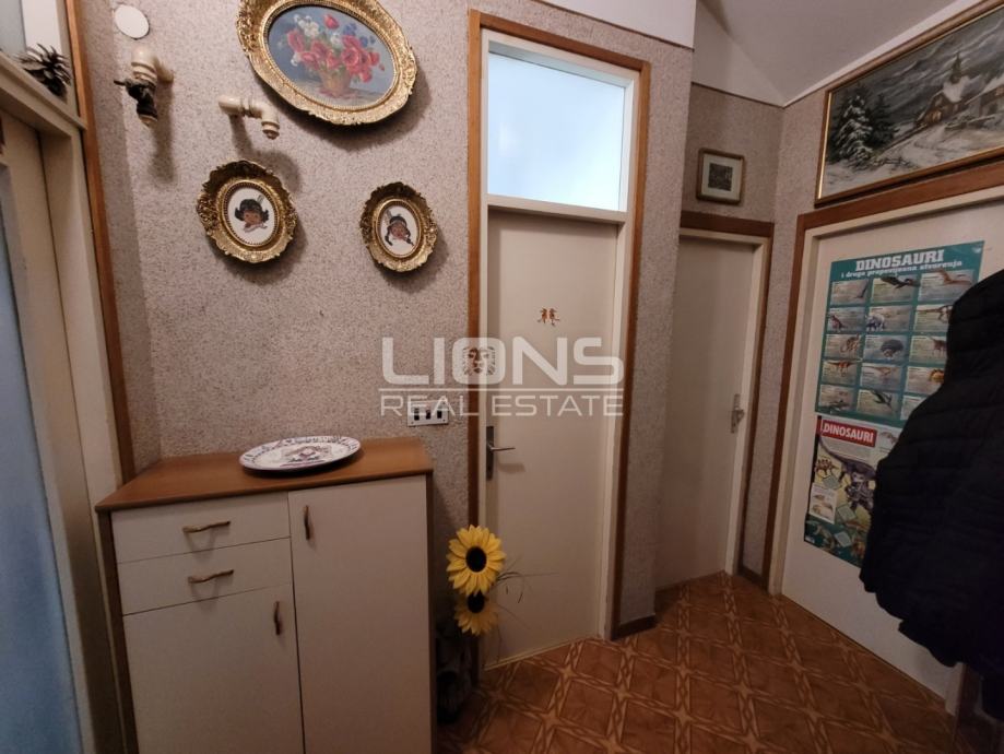 Stan je praktičnog rasporeda te se sastoji od ulaznog hodnika iz kojeg se s lijeve strane ulazi u kuhinju povezanu s dnevnim boravkom u jedinstvenom, otvorenom prostoru. Ravno od ulaza nalazi se kupaonica u izvornom stanju, koja budućim vlasnicima pruža mogućnost uređenja prema vlastitim željama. S desne strane smještene su spavaća soba i dječja soba, a iz dječje sobe pristupa se ostavi, što dodatno doprinosi funkcionalnosti prostora. U cijeni stana ostaju kuhinjski elementi te ugradbeni ormari u sobi, dok je grijanje i hlađenje riješeno putem klima uređaja koji također ostaje novom vlasniku.