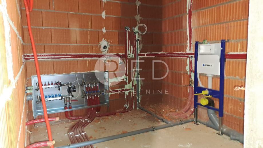 Objekt se gradi Porotherm blokom debljine 30 cm, namijenjenim kvalitetnoj i energetski učinkovitoj gradnji. Predviđeno je plinsko etažno grijanje — podno grijanje u dnevnom boravku i kupaonicama, dok su u spavaćim sobama planirani radijatori. Na terasi je također postavljen radijator, uz mogućnost naknadnog zatvaranja i proširenja grijanog stambenog prostora.