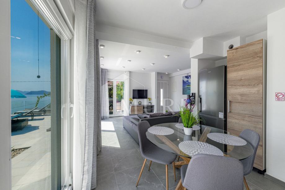Kuća se sastoji od 3 kompletno namještena stana od kojih svaki ima svoj balkon s pogledom na more i elafitske otoke.