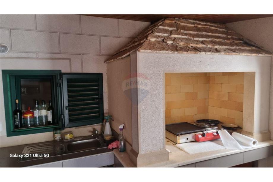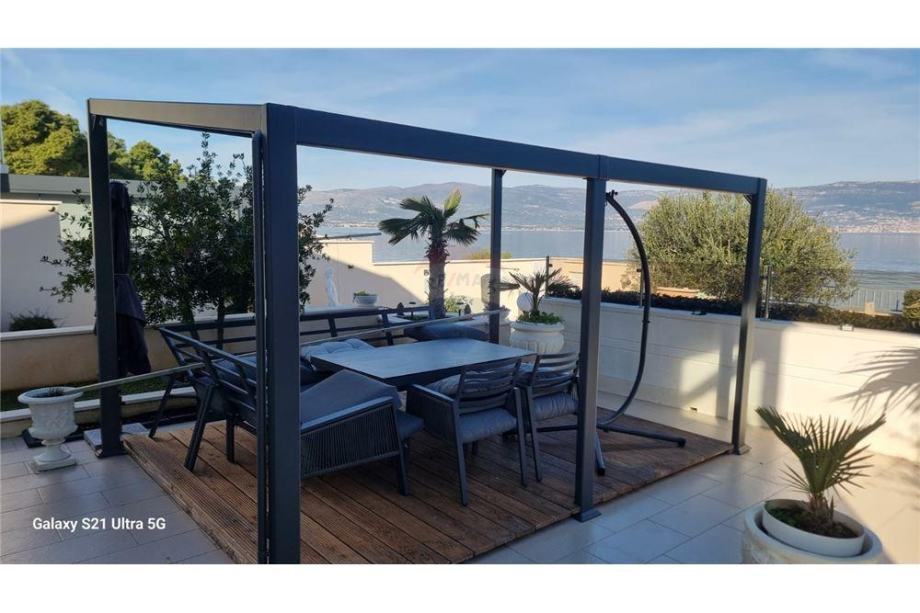 Za uživanje na otvorenom tu je velika terasa sa natkrivenom sijenicom sa koje imate direktni pogled na Kaštelanski zaljev.
