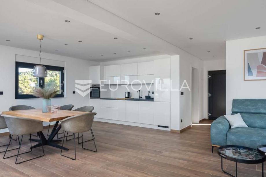 Slatine, on the first floor of a newly built residential building, which has a total of three residential units, there is a fully furnished apartment with a view of the sea.The apartment is divided into a hallway, two bedrooms (one of which has a terrace of 4.29 m2), two bathrooms, a kitchen with a...