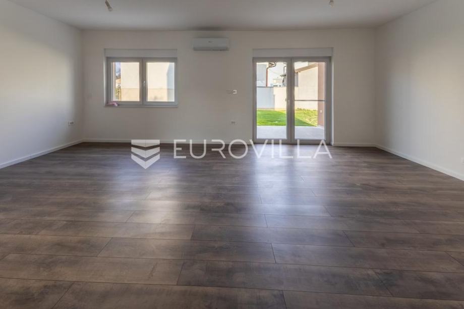 Prizemlje se sastoji od ulaznog prostora, tehničke prostorije s bojlerom i centralno smještenim ventilima, odvojenog WC-a te prostranog open space dnevnog boravka s kuhinjom i blagovaonicom s izlazom na terasu i direktnim pristupom garaži. Na katu se nalaze tri spavaće sobe, kupaonica i balkon. U cijeloj kući izvedeno je podno grijanje, ugrađena je PVC stolarija s troslojnim staklom i električnim roletama, fasada je izolirana s 15 cm stiropora, a ugrađena su i dva klima uređaja. Provedena je priprema za solarnu elektranu te instalacije za video nadzor s četiri kamere. Nekretnina se nalazi u neposrednoj blizini škole, trgovina i centra naselja, što omogućuje brz i jednostavan pristup svim svakodnevnim sadržajima, uz mirno i ugodno okruženje za obiteljski život.