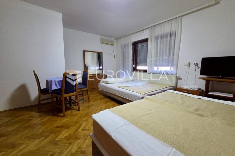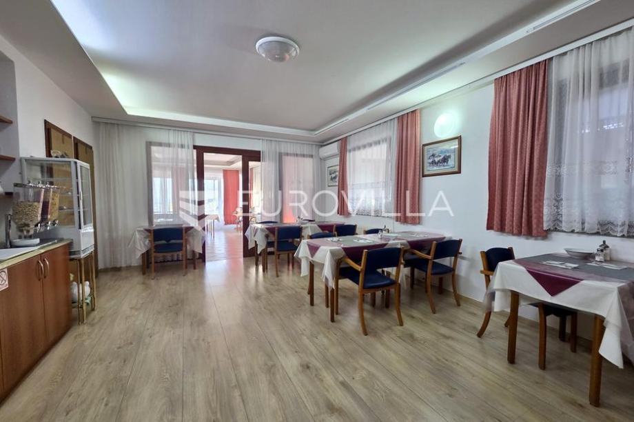 Slavonski Brod, Brodsko Vinogorje - potpuno opremljen i legaliziran pansion smješten u Brodskom Vinogorju, mirnom i povišenom dijelu Slavonskog Broda, udaljen svega nekoliko minuta vožnje od centra grada. Objekt se sastoji od tri etaže - suterena, prizemlja i kata - ukupne površine 1080 m2, a nalazi se na zemljištu veličine približno 2000 m2.Izgrađen je 1998. godine, održavan je redovito i u punoj je funkciji. Ukupno raspolaže s 20 prostranih i klimatiziranih soba, od kojih 6 ima balkon i djelomičan pogled na grad. Sobe su kombinacija dvokrevetnih i trokrevetnih, što ukupno omogućuje smještaj za do pedeset osoba. Svaka soba ima vlastitu kupaonicu, televizor, internetski priključak, hladnjak i klima uređaj. Podovi su obloženi klasičnim parketom, a ugrađena je kvalitetna drvena stolarija s roletama i komarnicima.Unutar objekta nalazi se potpuno opremljena profesionalna kuhinja, restoran sa šezdeset sjedećih mjesta te natkrivena terasa s panoramskim pogledom na grad. U prizemlju je organizirana recepcija, dok su u stražnjem dijelu objekta smješteni vešeraj, kotlovnica, prostorija za osoblje sa sanitarnim čvorom i dodatna spremišta. Grijanje je riješeno plinskim centralnim sustavom, a objekt posjeduje i vlastitu elektranu snage 17 kW, što dodatno smanjuje troškove.Na raspolaganju je 30 vanjskih parkirnih mjesta te 3 garažna mjesta, što je izuzetno važno za goste i osoblje. Objekt je potpuno legaliziran, posjeduje uporabnu dozvolu i važeći energetski certifikat. Prodaje se s kompletnim namještajem i opremom, što omogućuje kupcu da odmah preuzme poslovanje bez dodatnih ulaganja.Zbog lokacije, funkcionalnosti, kapaciteta i postojećih prihoda, nekretnina predstavlja izvrsnu investicijsku priliku. Procijenjeni povrat uloženih sredstava moguć je u razdoblju od 7 do 8 godina, što ovu ponudu čini vrlo konkurentnom na tržištu smještajnih i ugostiteljskih objekata.Za sve dodatne informacije i dogovor oko razgledavanja, slobodno nas kontaktirajte....Za ovu nekretninu kontaktirajte asistenta u prodaji na broj telefona +385 97 742 1701.Više na Eurovilla.hr, ID: 943867Direktan link: https://eurovilla.hr/nekretnina/slavonski-brod-brodsko-vinogorje-pansion-sa-20-soba-i-restoranom-odlicna-investicijska-prilika/943867/-----... For this property contact our agent on telephone number +385 97 742 1701.More on Eurovilla.hr, ID: 943867Direct link: https://eurovilla.hr/en/property/slavonski-brod-brodsko-vinogorje-guesthouse-with-20-rooms-and-restaurant-great-investment/943867/...