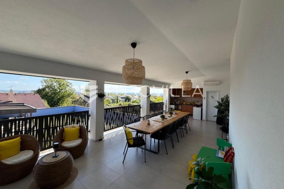 Slavonski Brod, Brodsko Vinogorje - prostrana obiteljska kuća ukupne neto površine 270 m², smještena na mirnoj lokaciji s otvorenim pogledom na grad. U prizemlju se nalazi veliki dnevni boravak s blagovaonicom, kuhinja, hodnik, kupaonica, dodatni WC, spavaća soba s walk-in ormarom, tri dječje sobe (jedna s vlastitom kupaonicom), terasa od 72 m² s kuhinjom i WC-om te prekrasnim pogledom na grad, lođa 25 m², te natkrivena sjenica s roštiljem (24 m²), prostor za proslave od 70 m² i uređeno dvorište. Prizemlje je kompletno renovirano 2024. godine - uključujući kupaonice i kuhinju sa svim novim sanitarijama.Na katu se nalazi zaseban stan koji sadrži hodnik, kupaonicu, WC, kuhinju, dnevni boravak s blagovaonicom, dvije spavaće sobe i dvije lođe. Oba stana imaju zajedničke režije, ali postoji mogućnost odvajanja. Kuća ima centralno plinsko grijanje, plinsku peć, solarne panele za toplu vodu, a krov je novoadaptiran. Uz kuću dolazi i zemljište površine 1.700 m². U neposrednoj blizini nalaze se škola, vrtić i trgovina.Za sva dodatna pitanja i informacije stojimo vam na raspolaganju....
