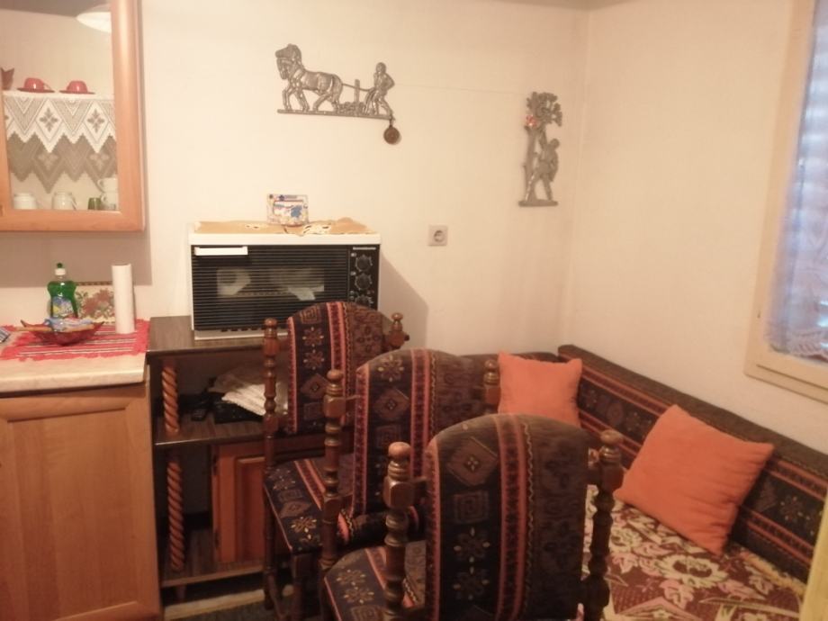Vikendica od 46 m2 s pomoćnom zgradom od 16 m2 te priključkom struje i asfaltiranom cestom, dok su voda i plin prošli ulicom.